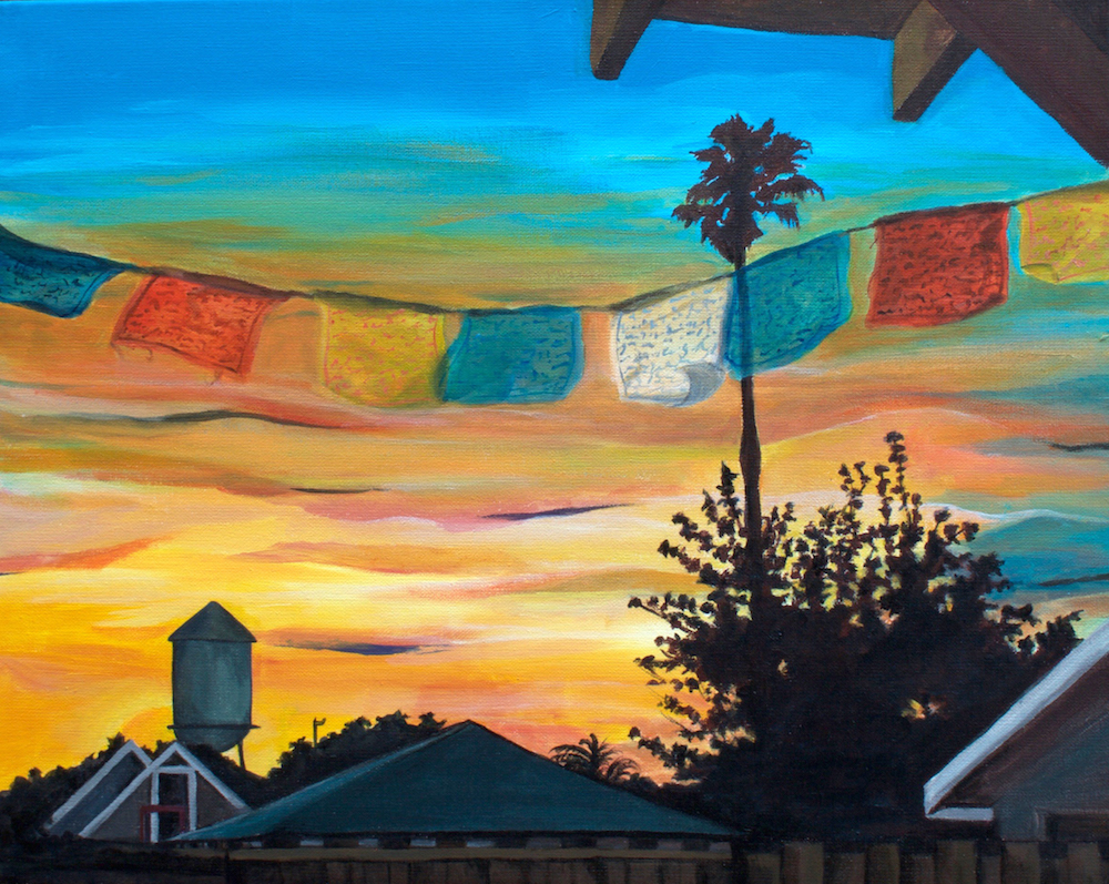 After almost 4 years of living in the area, I can genuinely say I’ve made this place my home – My San Joasis. This painting is a vibrant portrayal of my backyard view. I think it captures the essence of how I’ve made a little oasis with my partner and exhibits the gratitude I have for our space and the family we created.