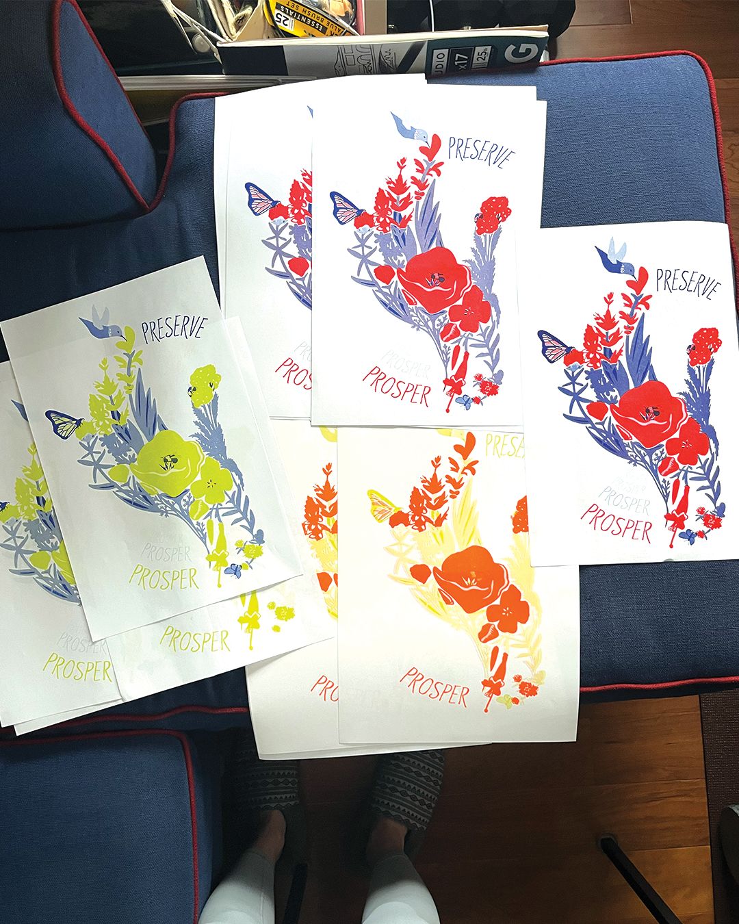 My initial design was created with two color layers: cyan and yellow. Another added challenge to this project was preparing the .ai file to print on a Riso printer in our design lab at De Anza College. There were limitations with the color choices in the end, but it was an interesting process to learn about and experience in the end.