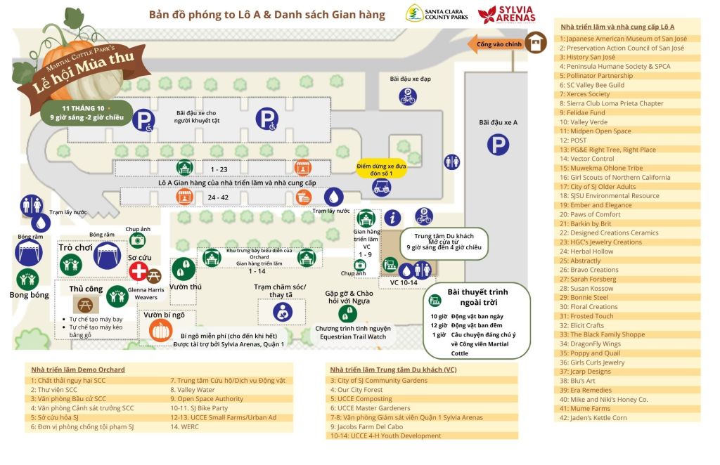 Drawing from the host park’s logo, the design is meant to focus on the agricultural legacy of the valley. Below is the front and back of the 2024 event flyer, event banner, and event map. The back of the flyer has event information translated into Spanish and Vietnamese: