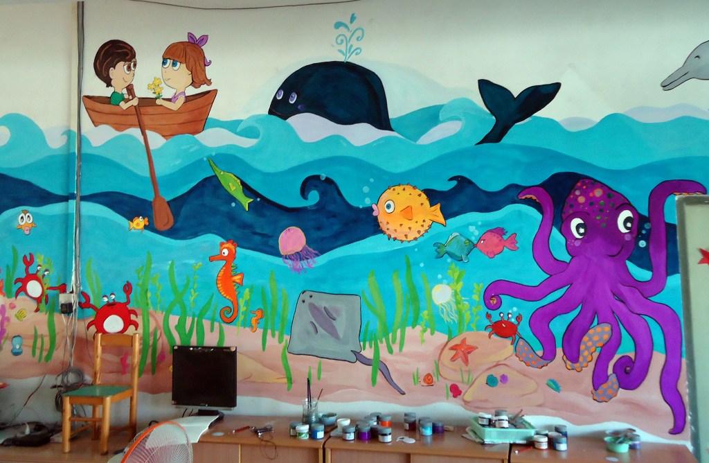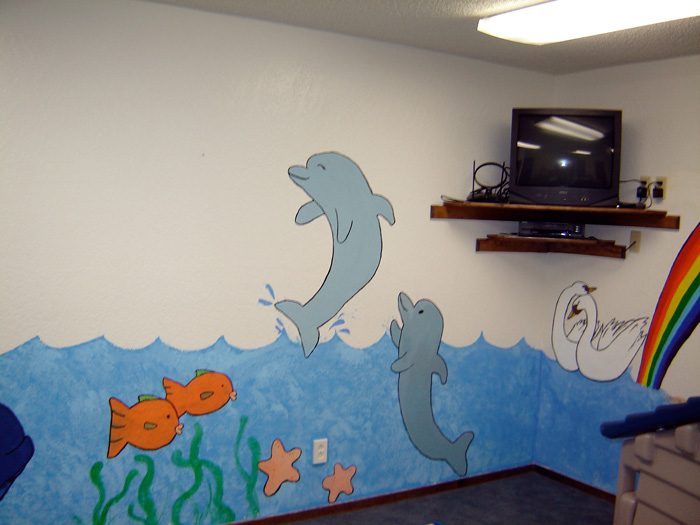 July – Dolphin mural. 8′ x 9′ bedroom wall for my nephew in Rancho Cordova, CA.