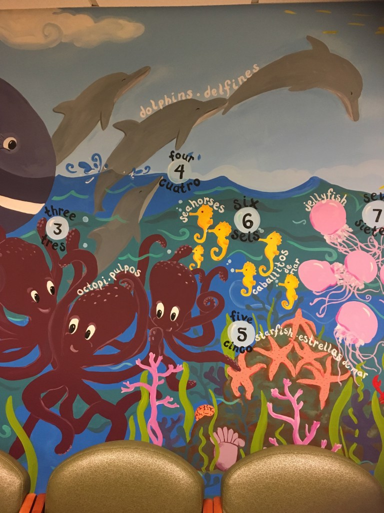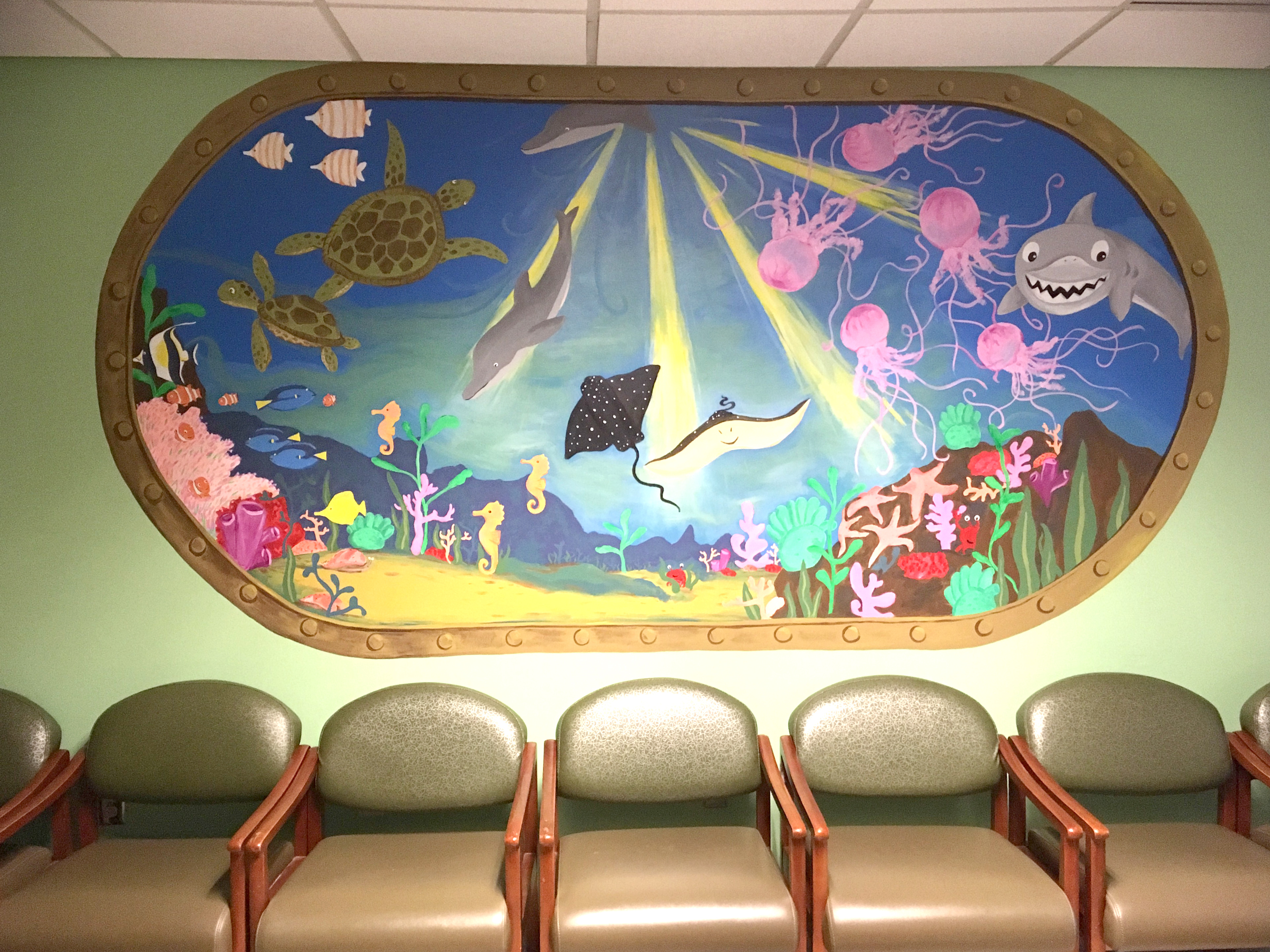 March 2019: Under the Sea Porthole Mural Project in the main waiting room of Valley Health Center Bascom (same clinic as the mural last month). I am grateful to have been commissioned by the Valley Medical Center Foundation in order to complete this short 2.5-day project.