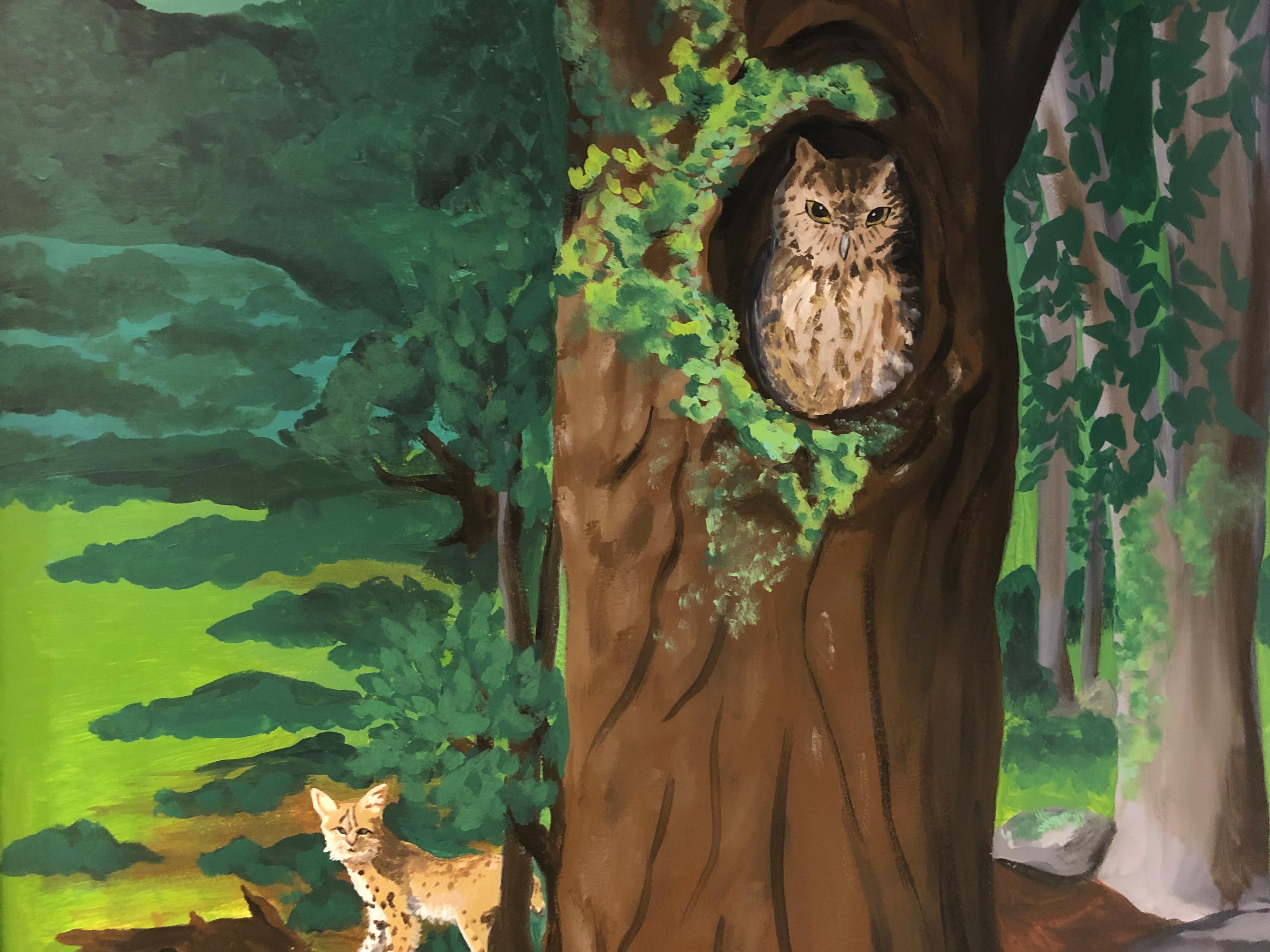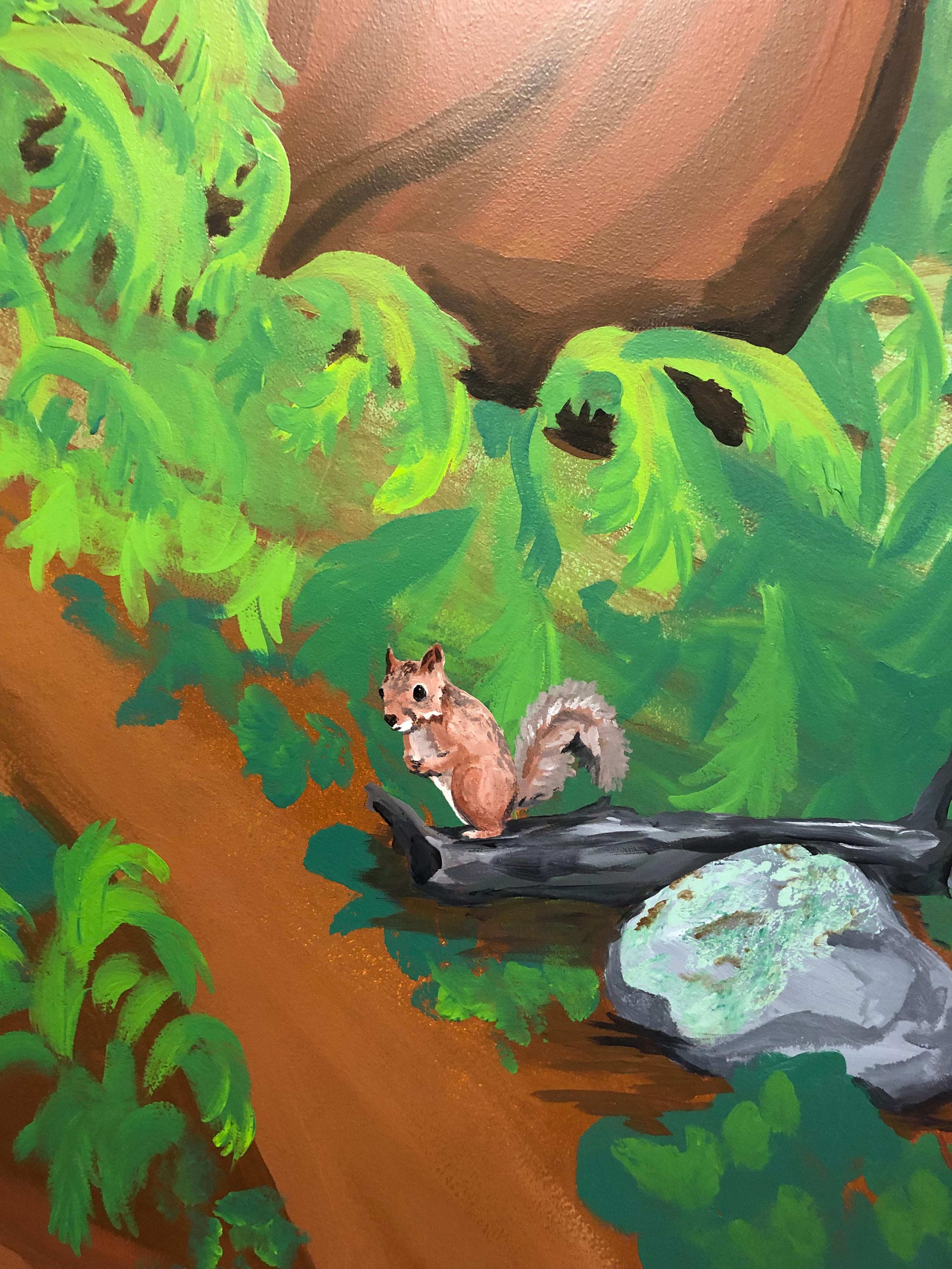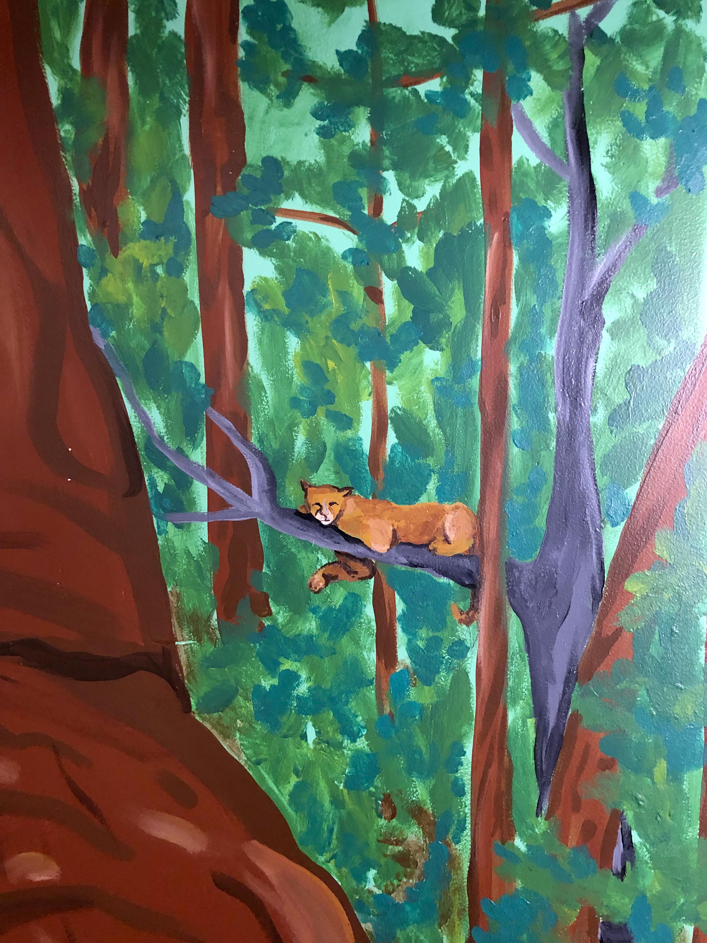June-early August 2021: Two 2nd floor waiting rooms of the Pediatric unit at Valley Health Center Bascom in San José. I was commissioned to brighten up the two main waiting rooms with a focus on California’s natural environment. The first mural is centered on California’s oak woodlands and the second is on redwoods forests. See the gallery below for close-ups of both and the time-lapse videos that capture the entire process.