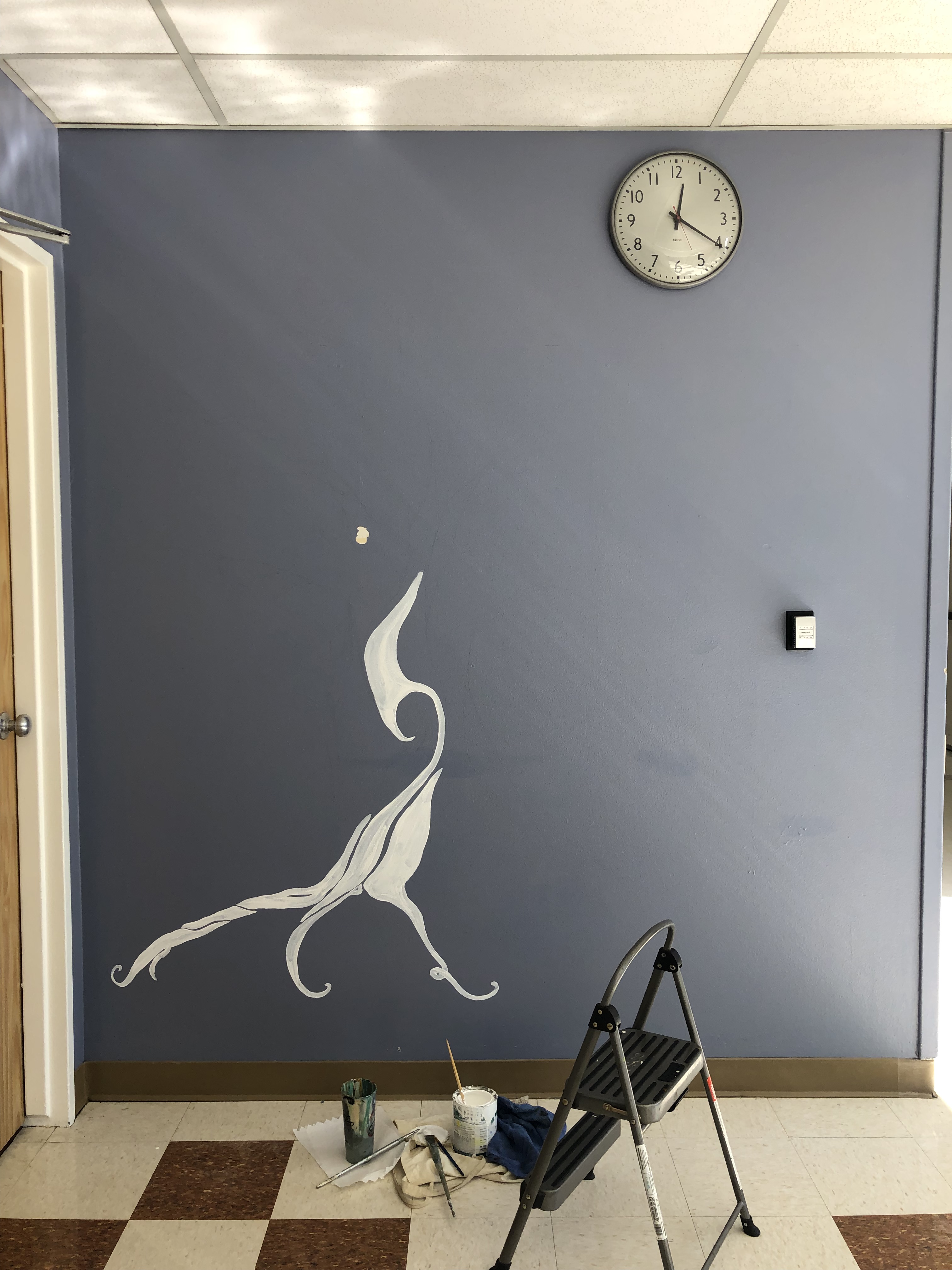 Both murals took around 40 (ish) hours in total, but the painting spanned over a few months in the summer. It was a great opportunity and I’m grateful to the staff at the clinic for their support and flexibility while I worked on these projects.